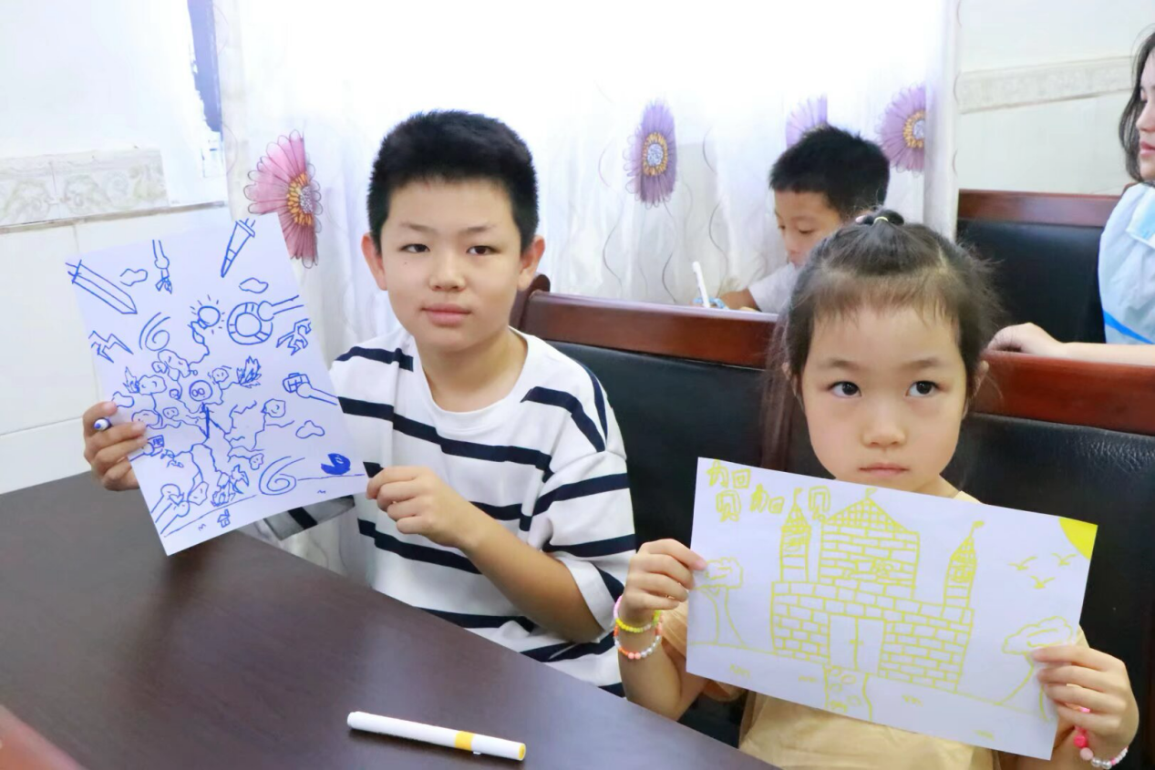 活动围绕“冷静处事思维培养”“身心安全知识与防护能力提升”“情绪涂鸦创作”三大板块展开。“物小志”实践团以寓教于乐的“红绿灯游戏”为载体,让孩子们在沉浸式体验中领会“三思而后行”的智慧。在“身体秘密花园”课堂上,实践团成员们着重强化自我保护意识,通过情景演示,帮助孩子们掌握识别隐私部位、果断拒绝不当接触的实用技能。在“情绪涂鸦”环节,孩子们充分发挥创意,用画笔勾勒出内心的喜怒哀乐,将无形的情绪转化为可视化的艺术表达,从思维塑造、安全防护到情感抒发,为儿童和青少年的健康成长注入多维能量。