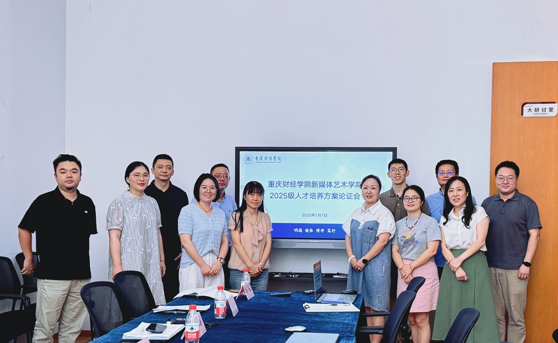 为主动适应数智时代发展趋势,全面提升人才培养质量,7月7日我校新媒体艺术学院举行2025级人才培养方案修订论证会。重庆工商大学、四川美术学院同行专家,商界传媒、优创会展,三辰影科技企业专家,以及我校教务处负责人与评审专家齐聚一堂,共同把脉学院人才培养方向。