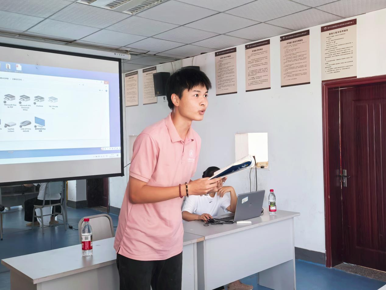 在老师讲解谐剧艺术特点并观看经典剧目后,黄明炀同学现场演绎了其中一个片段。他化身戴“果皮+橡皮筋”自制口罩的老爷爷,以方言和夸张动作还原生活场景,把老人的倔强与乐观演得活灵活现,赢得全场欢笑与掌声。这场00后与86岁非遗的隔代对话,用一方舞台和敢演的真心证明:传统艺术的薪火,终将在青春的创意中燃得更旺。