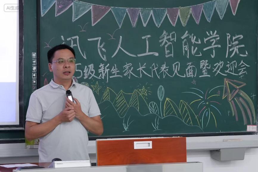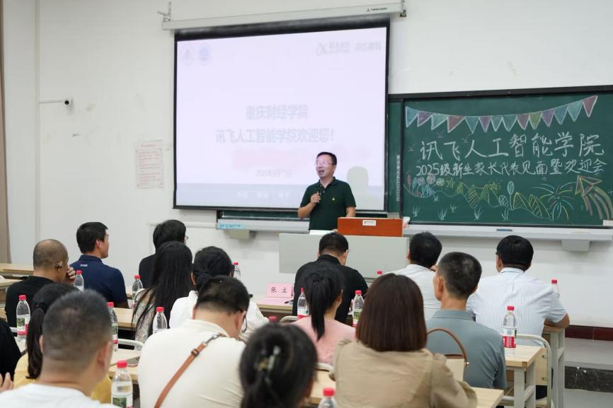 学校副校长(兼讯飞人工智能学院院长)张立,学校产教融合首席教授、讯飞人工智能学院学术带头人周启刚教授,讯飞人工智能学院党总支书记、副院长乐晓勇,讯飞人工智能学院常务副院长艾军勇、副院长曹飞,副院长、讯飞高教人才业务西南总监、科大讯飞高级工程师田荣阳、学团办公室主任江蕊弘,科大讯飞工程师付旺、余淼,2025级新生辅导员蔡霞、谢平,与102名来自全国各地的新生家长代表共聚一堂,展开深入而热烈的交流。本次会议由学院常务副院长艾军勇主持。