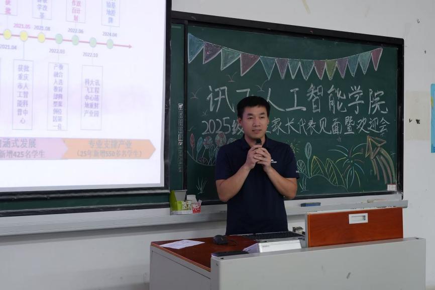 为响应“家校共育”工作要求,搭建高效畅通的家校沟通平台,助力家长全面了解学校办学愿景、学院各专业人才培养特色,凝聚家校合力,9月13日下午,我校讯飞人工智能学院在1311教室隆重举办2025级新生家长代表见面会。