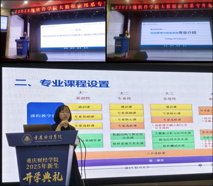 专业剖析,锚定前行坐标。会上,专业解读环节干货满满。涂春梅主任着重提醒,同学们既要筑牢编程语言、算法设计等基础知识根基,更要通过大量项目实践锤炼解决实际问题的能力。杨月红副教授则针对信息管理与信息系统专业,强调学生需兼具现代管理学知识与信息科学技术能力,成长为复合型人才。何晓晔博士为大数据管理与应用专业新生提出“取势、明道、优术”理念,鼓励他们紧跟时代潮流,把握行业动态。他们从课程设置、教学模式到实践环节,为新生勾勒出未来两年需掌握的知识技能蓝图,展现出专业发展的多元路径。
