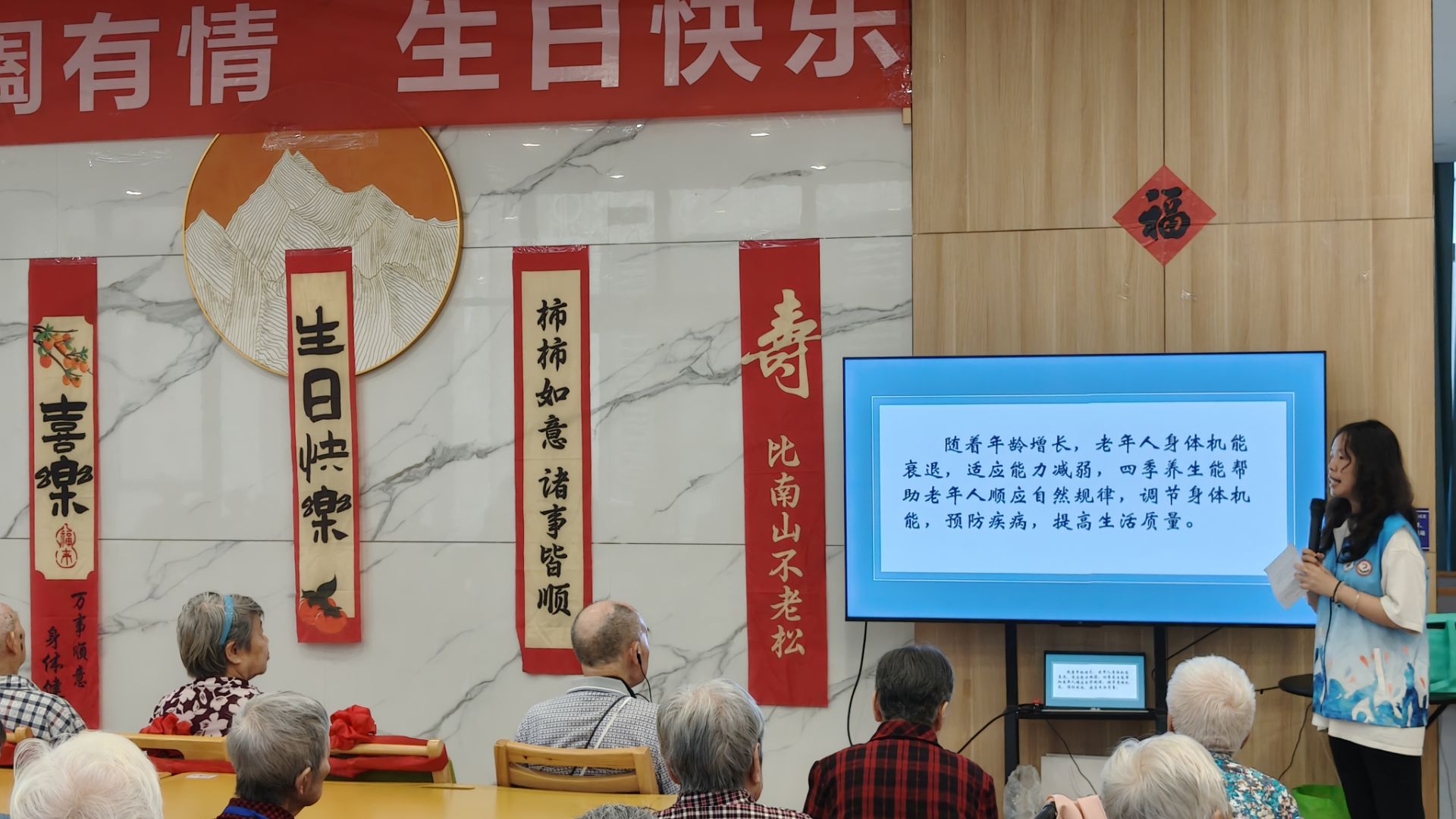 四季养生,精准科普回应健康需求。活动中,23健康班王秭以“四季养生”为主题开展专题宣讲,结合中医理论与现代营养学,用生动案例为老人们讲解季节健康要点:春季建议增加户外踏青疏肝理气,夏季强调清淡饮食与防晒补水,秋季推荐冥想赏花调节情绪,冬季则需重点保暖防寒并保持室内通风。