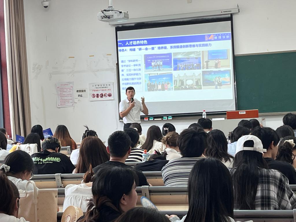 最后,在备受关注的“招生报考”环节,为同学们带来了最新的招生政策信息。他就报考条件、招生专业、考试科目、奖助补政策、招生咨询方式等关键问题进行了逐一讲解和精准指导,并耐心解答了现场同学的踊跃提问,为备战2026年研究生考试的学子们提供了清晰、实用的备考路径。