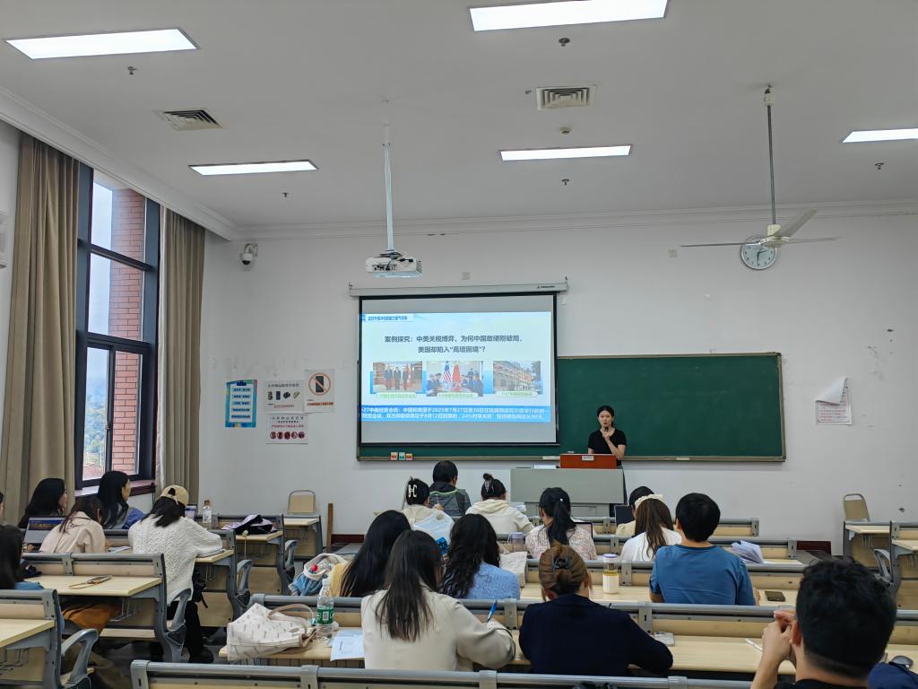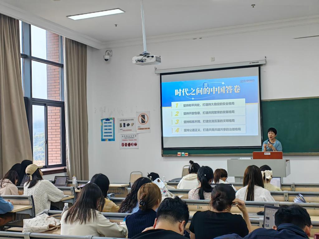 随后,负责各专题备课的教师代表高雪莲老师、李丹阳老师和易雪老师分别围绕《践行多边主义完善全球治理》、《正确认识中国经济热点问题》、《阔步迈向农业强国》三个专题展示了她们的备课成果并分享了备课思路,参会教师们就三个专题的教学内容和方法进行了热烈讨论,积极建言献策,共同完善了课件内容。