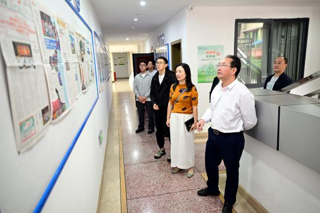 座谈会前,学院一行参观了九龙坡区融媒体中心办公室、报刊部、新媒体部、通联部和技术部等部室以及演播厅等核心区域。融媒体中心主持人详细介绍了中心的运营流程和机制,并展示了大数据舆情分析等技术应用。