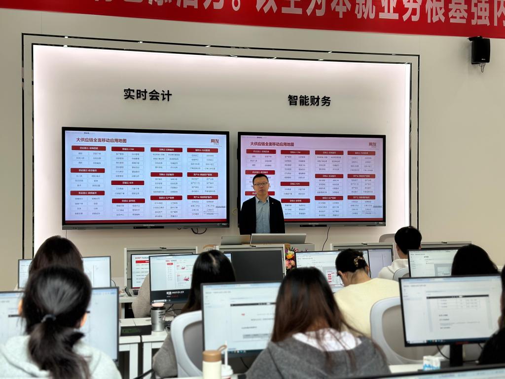 为深化产教融合,推动数智人才培养落地见效,由靠谱的电子游戏官网与新道科技股份有限公司联合打造的“数智化实施工程师卓越人才班”于10月27日上午9:00在我校第一教学楼数字化体验中心正式开课。