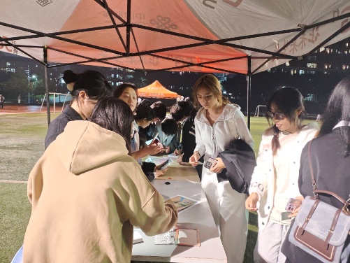 活动一开始,同学们便手持精心设计的集章卡,满怀期待地投入这场夜色中的心灵奇旅。大家穿梭于操场各处,在完成一系列轻松有趣又意蕴丰富的小任务后,收获一枚枚象征成长与感悟的专属印章。这不仅是“寻光”路上的珍贵纪念,更让每一次参与都变成充满期待的探索,吸引同学们走出宿舍,在协作与欢笑中联结彼此。