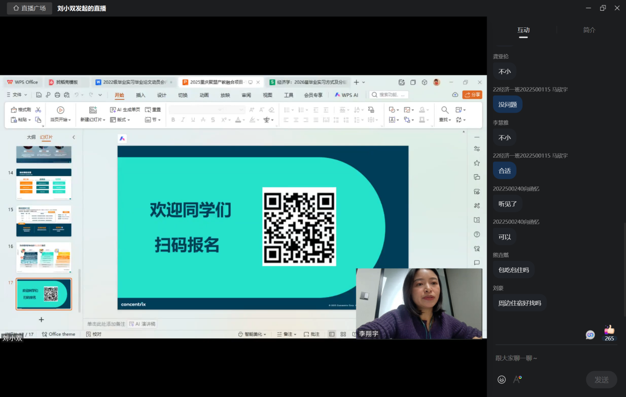 为助力2022级经济学与贸易经济专业学生准确把握毕业核心任务,切实解决其在实习与论文方面的困惑,10月28日上午,经济系负责人通过钉钉群直播成功开展毕业实习与论文专题启动会,会议由经济系负责人主任刘小双老师主讲,经济学和贸易经济专业全体学生参会。