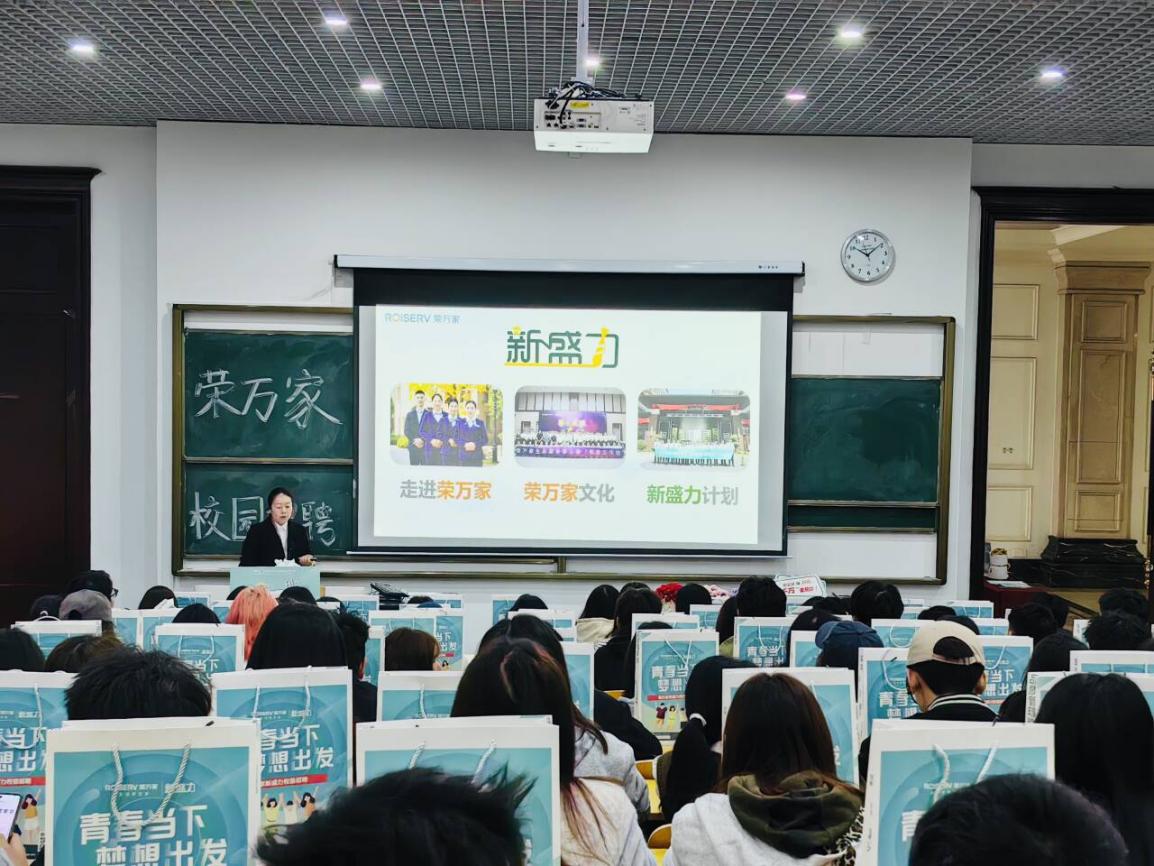 宣讲环节中,荣万家生活股份有限公司人力行政经理李丽,以行业发展趋势为切入点,系统解读了企业在智慧物业、社区服务创新等领域的战略布局与实践成果。经理结合真实案例,详细介绍了企业人才培养体系、职业晋升通道及薪酬福利机制,为在场学子勾勒出清晰的职业成长路径,让大家对物业行业的现代化发展前景有了更深刻的认知。