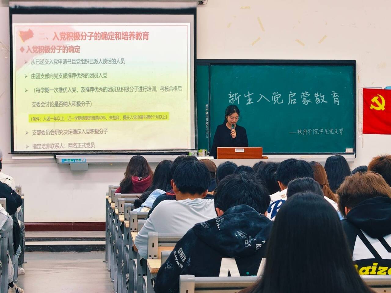 为扎实做好党员发展工作,从源头把好质量关,软件学院学生党支部于11月10日至11日面向2025级全体新生(含专升本新生)举办了15场入党启蒙教育。活动通过“沉浸式宣讲+互动式交流”的方式,帮助新生迈好政治生涯的第一步,引导他们增进对党的认识,端正入党动机,筑牢理想信念的根基。