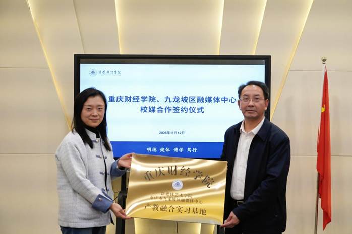 为深化产教融合、创新人才培养模式,携手助力区域传媒事业发展,2025年11月12日下午,我校新媒体艺术学院与九龙坡区融媒体中心校媒合作签约暨“产教融合实习基地”授牌仪式圆满举行。双方将整合资源优势,共同探索校媒协同育人的新路径,培养适应全媒体时代需求的高素质应用型传媒人才。