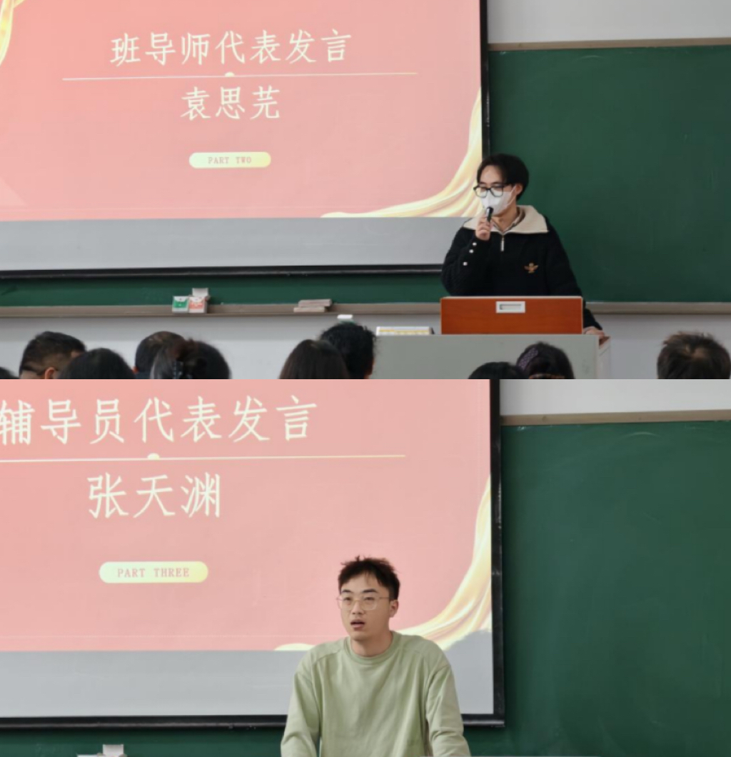 启动仪式在庄重热烈的气氛中拉开帷幕。主持人首先强调本次活动的背景,学风是大学精神的核心要义,专业是学子成长的立身之本,学风建设更是学院落实立德树人根本任务、提升人才培养质量的关键。随后,班导师代表袁思芫老师发言表示,本次学风建设搭建了班导师与学生常态化、制度化沟通桥梁,让精准指导成为可能,坚信在学院引领下,同学们必将取得更优成绩。紧接着,辅导员代表张天渊老师表态,将全力配合班导师工作,凝聚育人合力,营造积极向上、严谨求实的优良学风,为学生成长成才提供全方位支持。最后,学生代表吴伟凡发言回应,将积极响应学院号召,主动融入学风营造,与班导师密切沟通,在就业、考研、留学等赛道提前规划、精准发力。