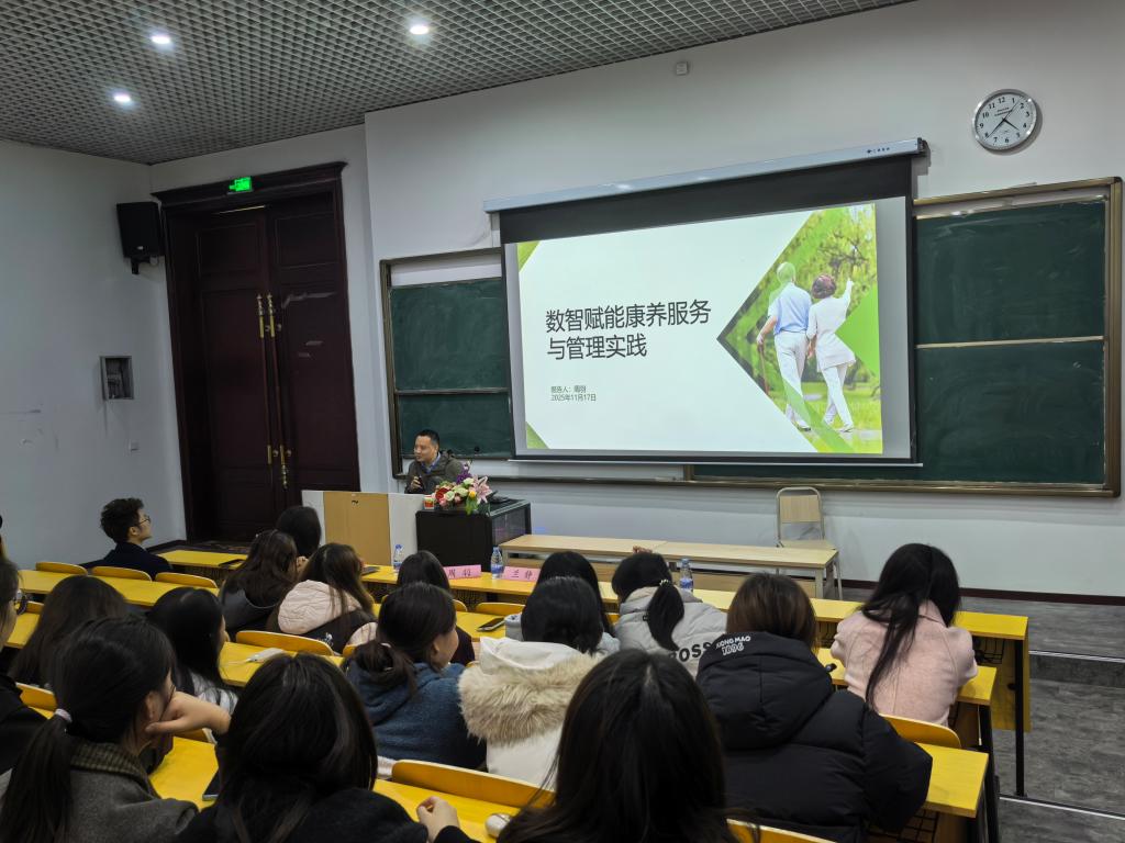 数智领航,解锁康养服务新场景。康养服务数字化转型先锋周羽先生围绕 “数智赋能” 主题,分享了数字技术在康养领域的创新实践案例。从智慧健康管理平台的高效运作,到远程监护技术的实时守护,再到数据驱动下的个性化康养方案定制,一个个鲜活实例直观展现了数字化对康养服务的革新力量。周羽先生着重强调,数字化思维与跨学科能力是未来行业人才的核心竞争力,鼓励新生主动拥抱新技术、紧盯行业前沿,以创新姿态适配产业发展需求。