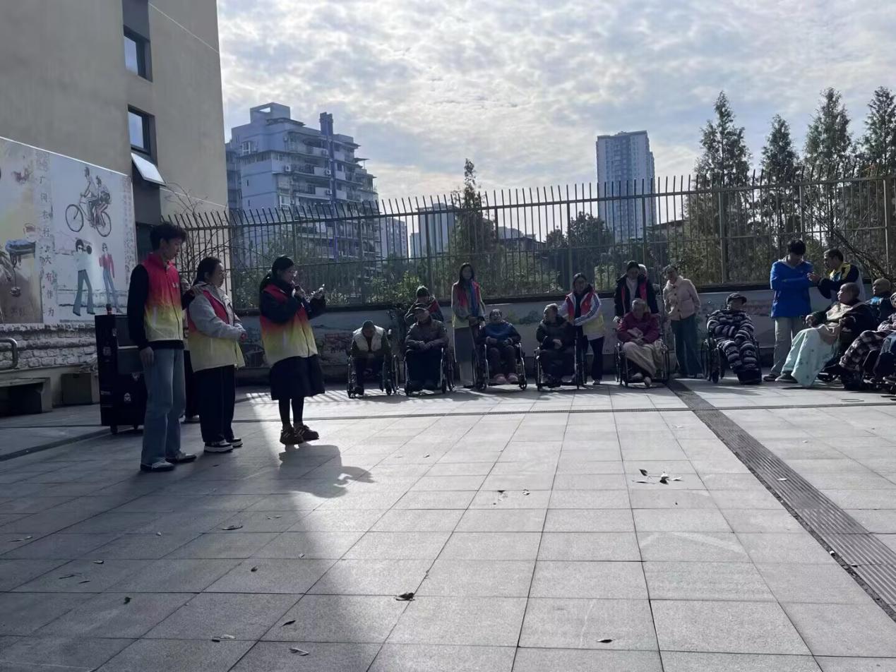 文艺表演环节无疑成为了整场活动的高潮所在。志愿者们为了这一刻倾注了大量心血,精心编排了一系列精彩纷呈的节目。首先登场的是动人心弦的合唱《世界赠予我的》,那悠扬的旋律和深情的歌词瞬间感染了在场的每一个人。紧接着,充满活力的手势舞《桃花笑》以其优美的动作和欢快的节奏,赢得了老人们的热烈掌声。此外,还有饱含深情的诗歌朗诵,字字句句都传递着温暖与感动。老人们聚精会神地观看,眼中闪烁着喜悦的光芒,不时地拍手叫好,表达内心的激动。更有一些老人情不自禁地跟着节目的节奏轻轻哼唱,脸上洋溢着幸福而满足的笑容,整个现场沉浸在一片温馨与欢乐的氛围中。