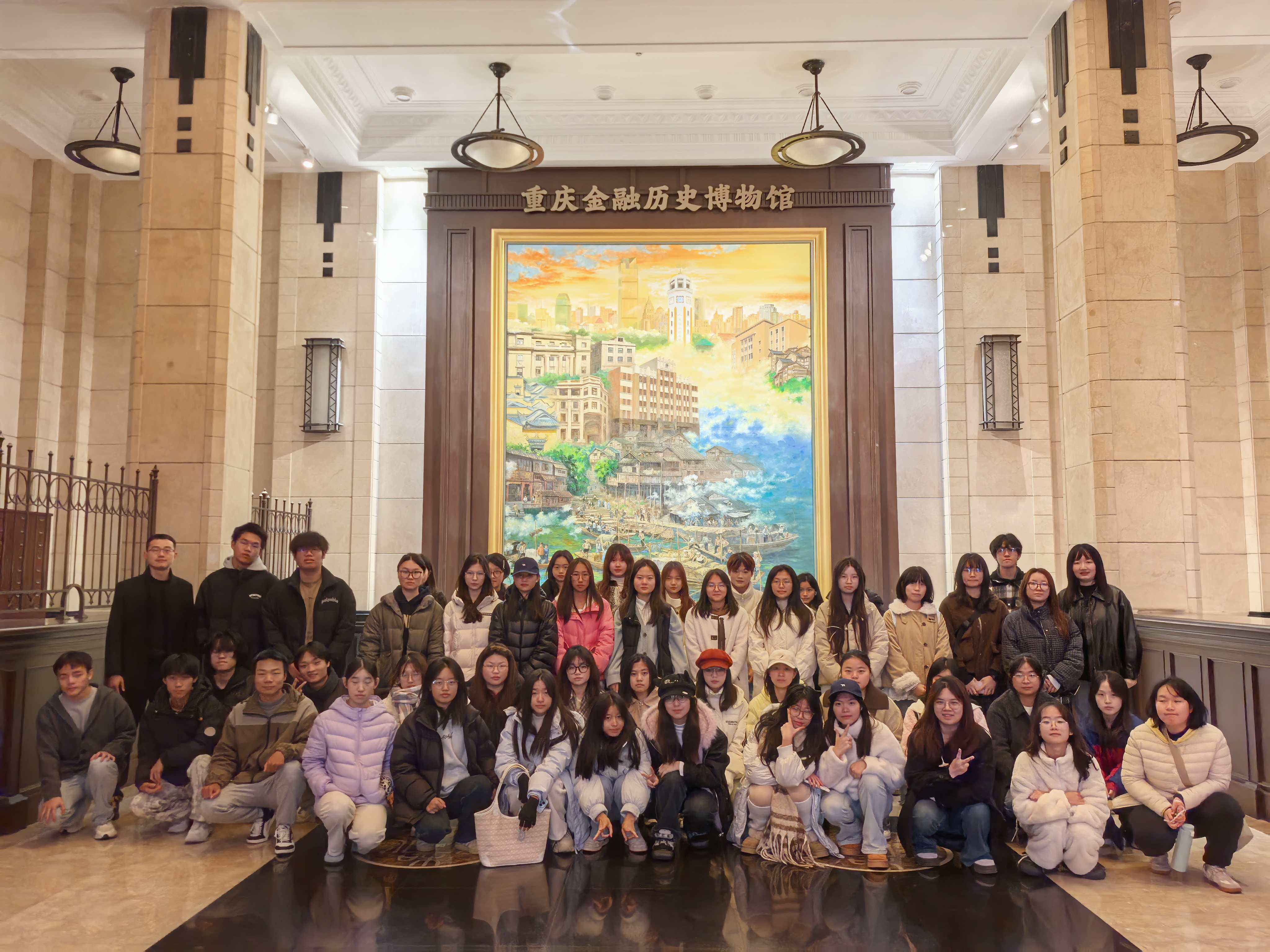 为将理论认知转化为实践感知,11月27日,黎莹主任与马玺渊导师带领全体新生赴重庆金融博物馆开展实践认知活动。在博物馆讲解员的引导下,师生一行先后走进17个展区,重温川渝地区的红色金融历史。参观过程中,新生们始终保持着浓厚的学习兴趣,不时驻足询问、记录要点。