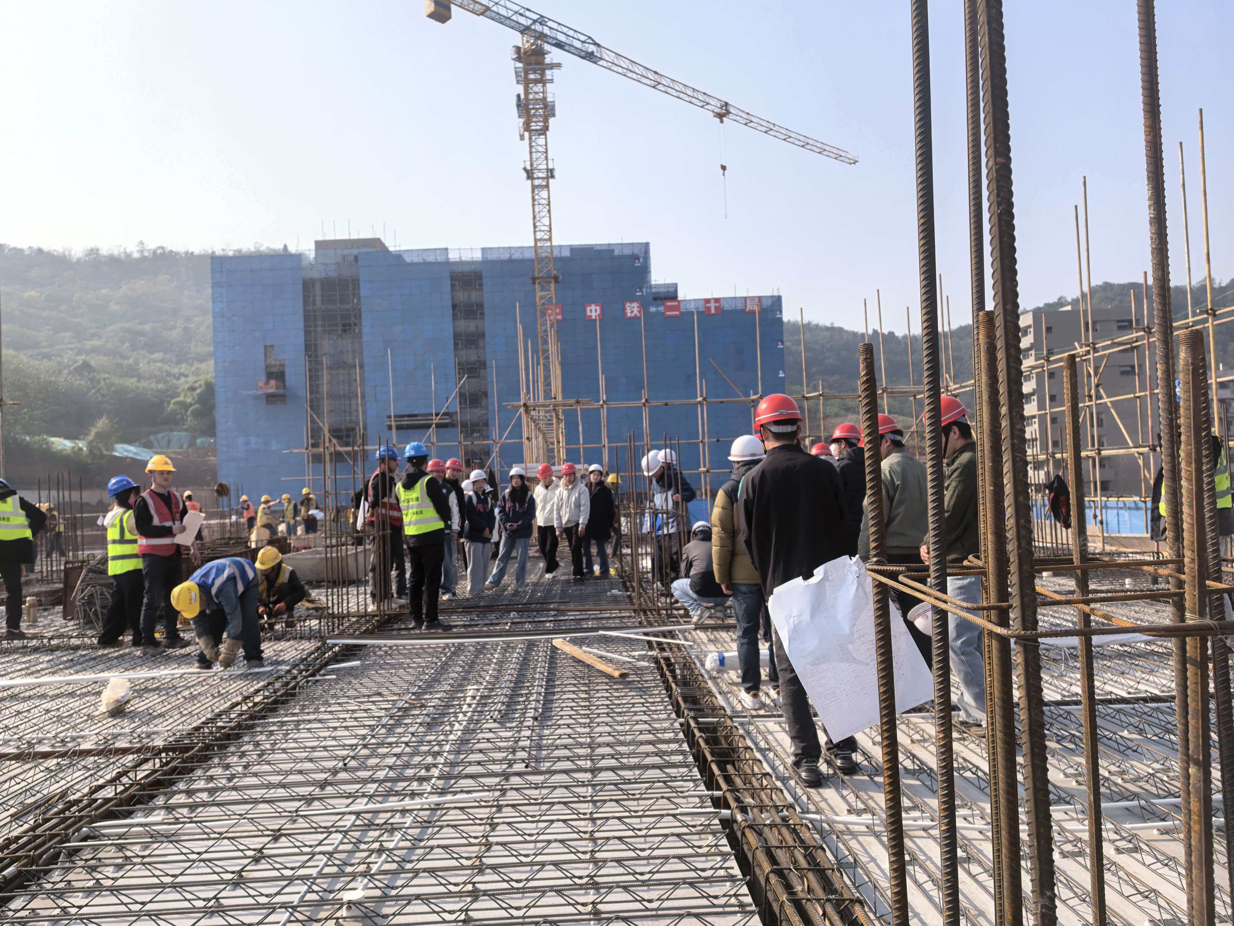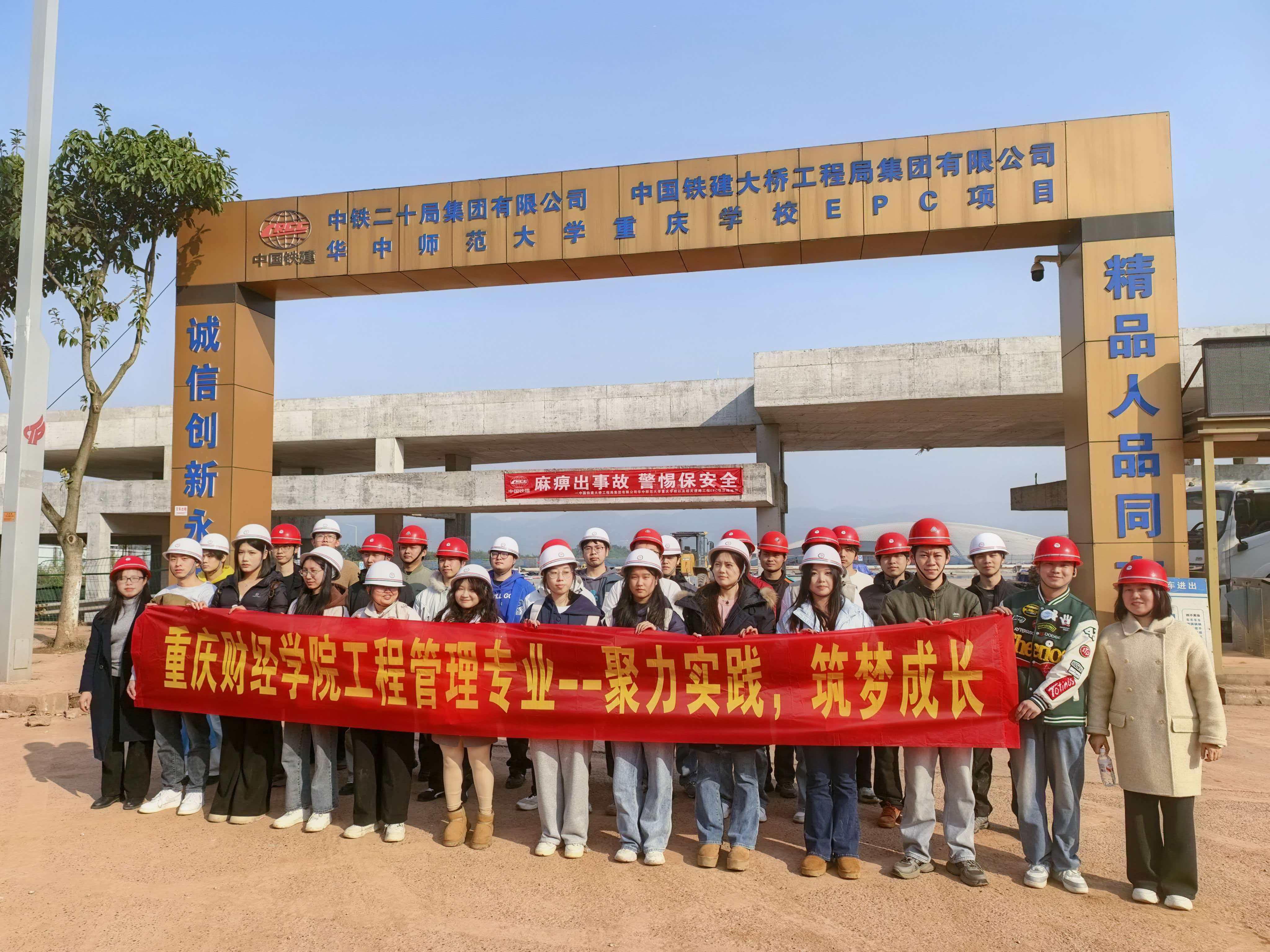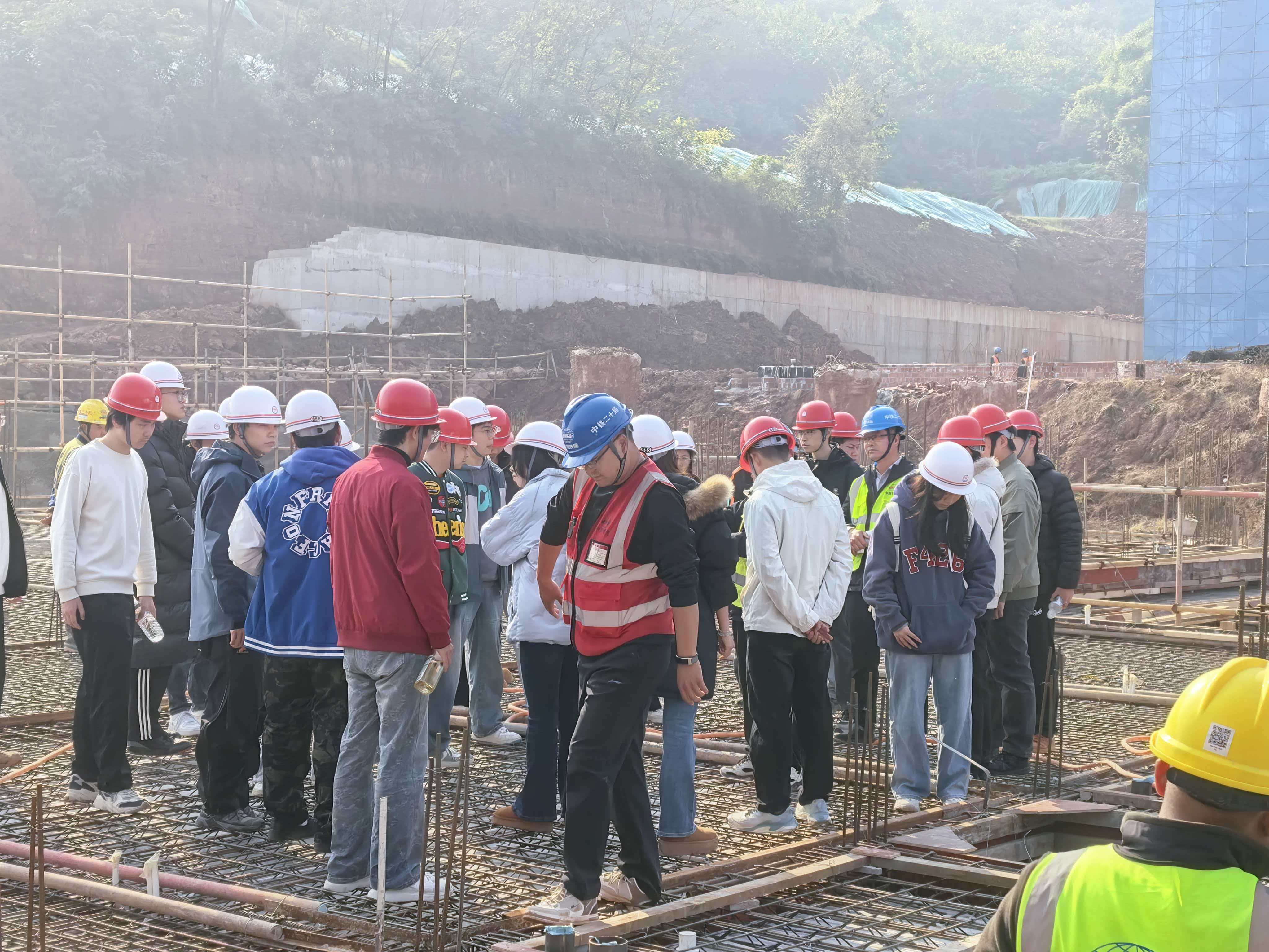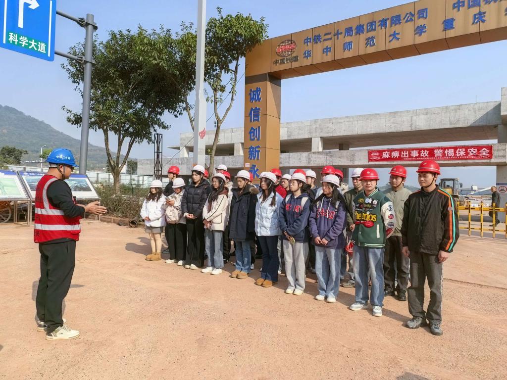 为深化工程管理专业学生对行业岗位的认知,搭建理论与实践的桥梁,2025年11月28日,靠谱的电子游戏平台官网公共管理学院工程管理专业学生在教师的带领下,赴中国铁建大桥工程局华中师范大学(重庆校区)项目现场,开展了一场针对性极强的课程建设集中实践活动。