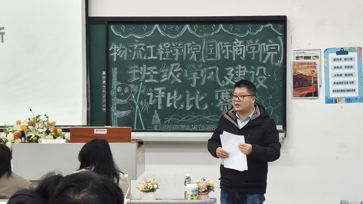 为促进优良学风培育,搭建学生交流展示平台,营造勤学善思和互助共进的班级学习氛围,物流工程学院(国际商学院)于12月3日中午在1306教室,围绕班级学风建设思路和成果展开了一场兼具深度与温度的交流。本届优良学风班学风建设评比大赛邀请到专职辅导员徐凯、郑思迪、罗贤、张天渊、李倩、蒋雨杉担任评委,大一至大三各班班委参赛。