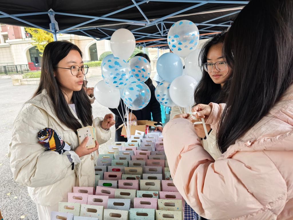 活动围绕“暖冬志愿·指尖传情”主题,设置了三大趣味挑战环节。在“袋袋相传·手速大挑战”中,同学们双手交替抛接塑料袋,场面欢快,完成连续抛接者兴奋欢呼;“校园盲盒·善意漂流”环节,同学们将写有暖心寄语的小物件封装成盲盒,传递“致陌生的你”的无声善意;在“指尖织趣·点位打卡”处,即使是零基础的同学也互相请教针法,在编织过程中洋溢着笑容与成就感。现场还设有通关奖励:完成两项挑战可抽取实用盲盒,全部通关则获得暖宝宝礼品。整场活动在轻松愉快的互动中,让“奉献、友爱”的志愿精神在冬日校园中生动传递。