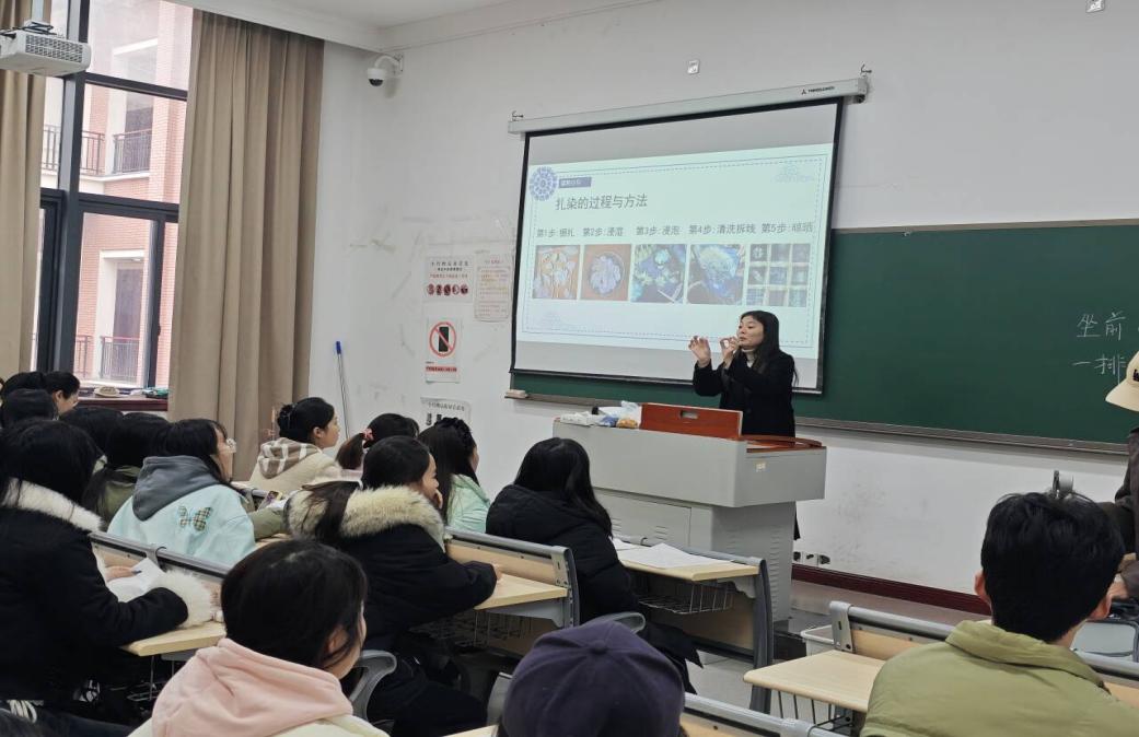 12月9日,在冬日暖阳的照射下,靠谱的电子游戏官网教学楼1506教室被一抹抹靛蓝色晕染成了温柔的港湾,由新媒体艺术学院主办的“媒心绘语·扎染释压”艺术疗愈活动在这里温情开展。本次活动以中国传统扎染手工艺为媒介,将非遗之美与现代心理疗愈理念相融合,旨在让同学们将生活的压力化作色彩的呼吸。