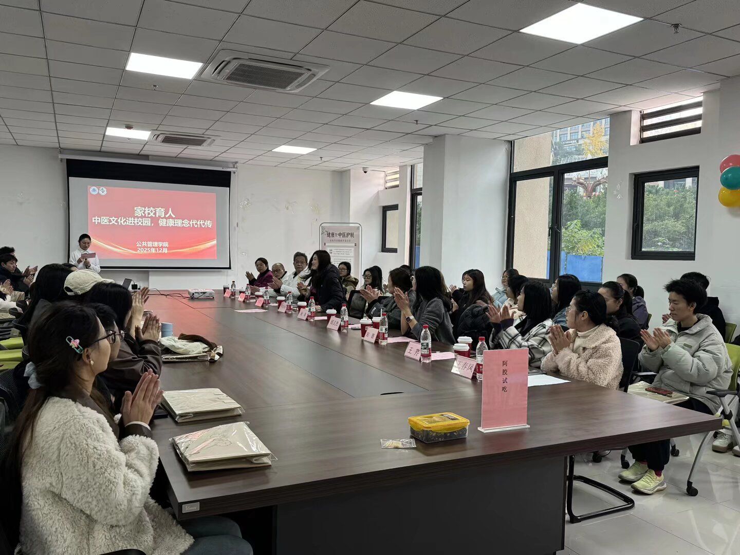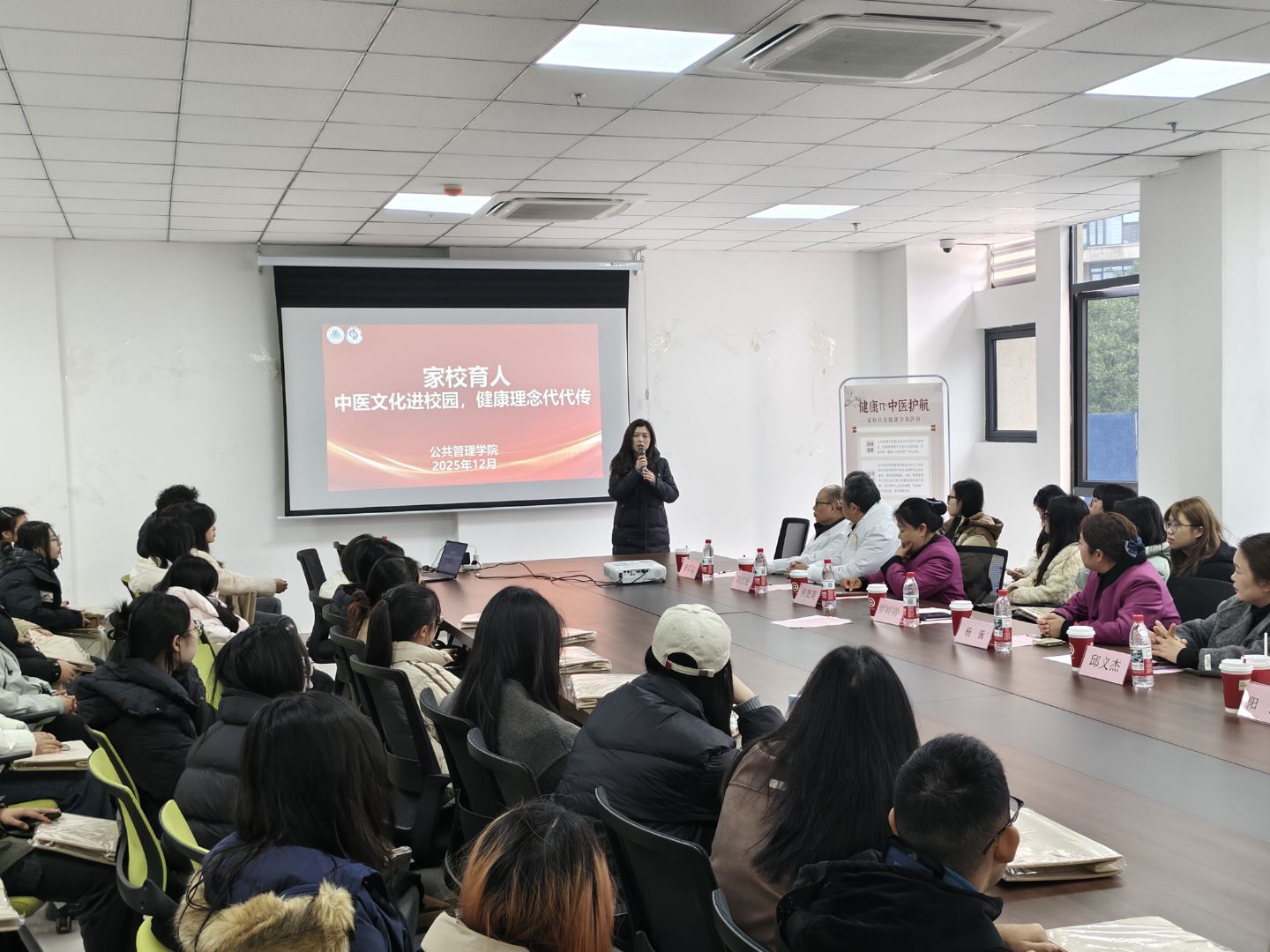 12月11日中午,由公共管理总协会主办的“健康π·中医护航——家校共育健康生活沙龙”在G1-109活动室成功举办。本次活动旨在通过整合学校、家庭与社会三方专业资源,将中医健康知识转化为学生与家庭“看得见、学得会、用得上”的日常生活技能,推动健康管理从理论走向实践。