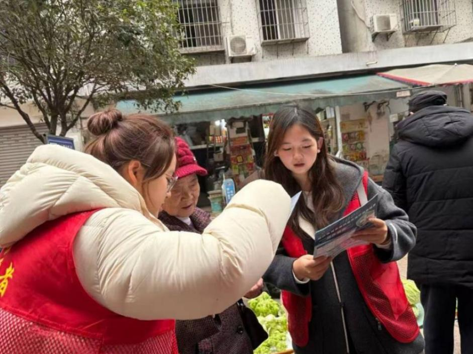 社区治理,共建文明新风:在惠民社区,同学们深入楼栋,开展入户宣传,向居民耐心讲解医保政策、文明创建等近期重点工作;同时,对居民楼公共区域进行细致清扫,美化人居环境。在社区农贸市场,同学们开展文明劝导,维护市场秩序与环境卫生,助力营造整洁有序的公共空间。