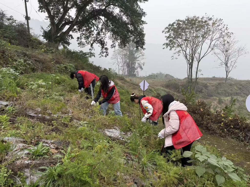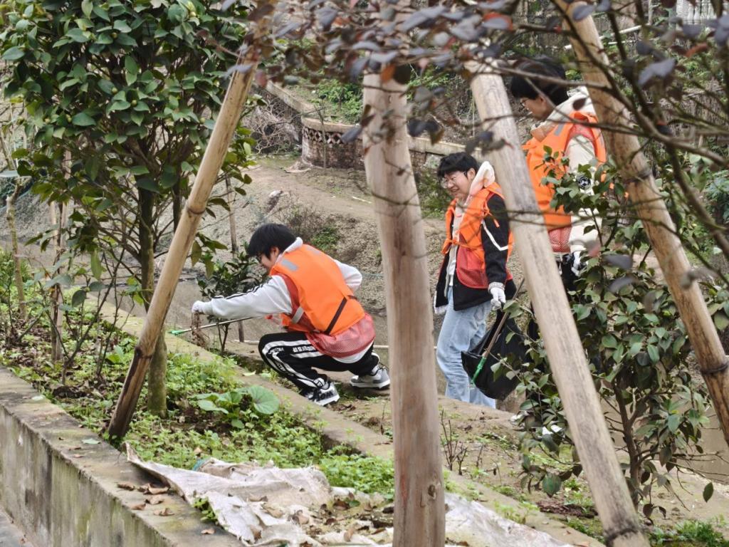 乡村振兴,美化宜居家园:在沙井村、龙凤村、显林村等地,师生们沿着乡道、村道清理白色垃圾,用实际行动守护绿水青山。在晓春村,结合医保宣传同步进行街道清扫,提升村容村貌。在辅仁村,同学们在药用植物园内认真除草,并清扫村道,体验农业劳作,感受乡村振兴的蓬勃生机。