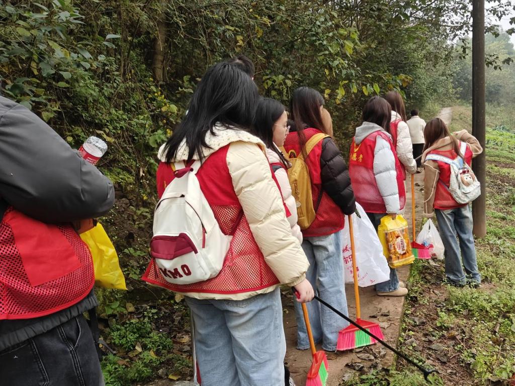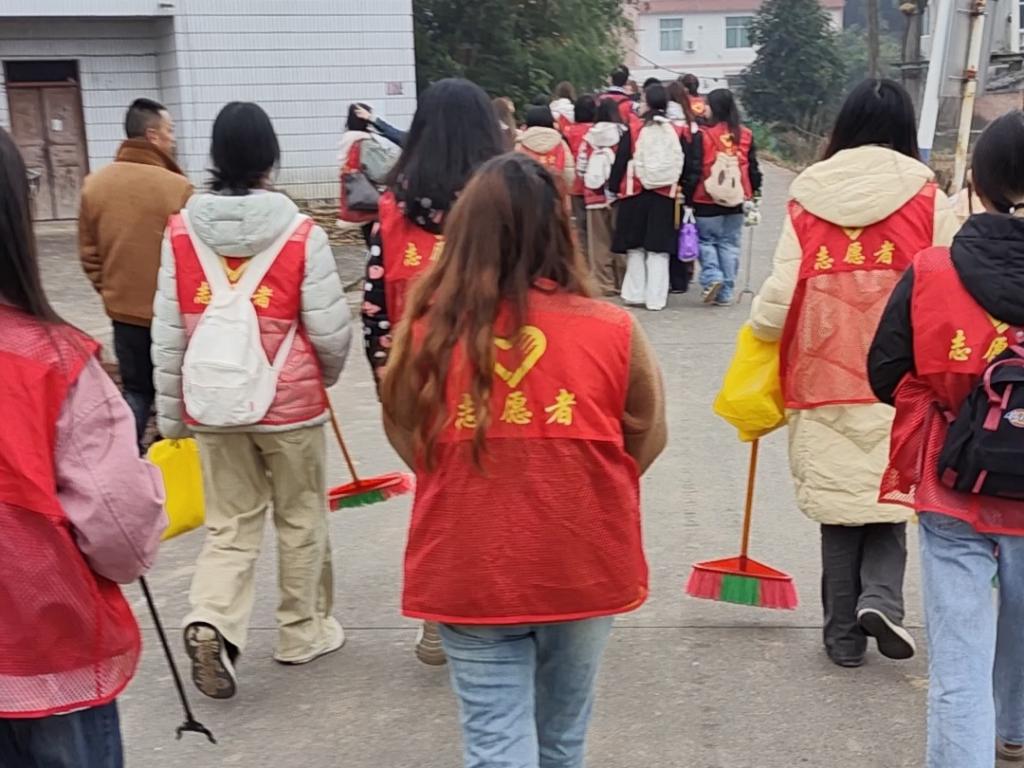 12月8日清晨,薄雾未散,24数字经济二班的志愿者们已手持工具,沿村道开始清理工作。“这些年轻人干起活来真扎实!”沙井村驻村志愿者张正西老师望着同学们忙碌的身影称赞道。四天时间里,320余名志愿者分批前往惠民街道7个村社,完成8项志愿服务,累计服务时长超1000小时,覆盖群众500余人次。