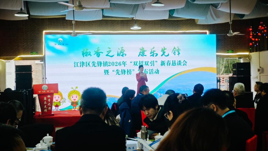 2026年2月8日,我校新媒体艺术学院副院长殷骆骏楠率领教师代表胡欣、黎勇志、张倩云等一行,赴重庆市江津区先锋镇,参加2026年“双招双引”新春恳谈会暨先锋榜发布活动,积极探索校地联动新模式,助力乡村振兴实践向纵深推进。