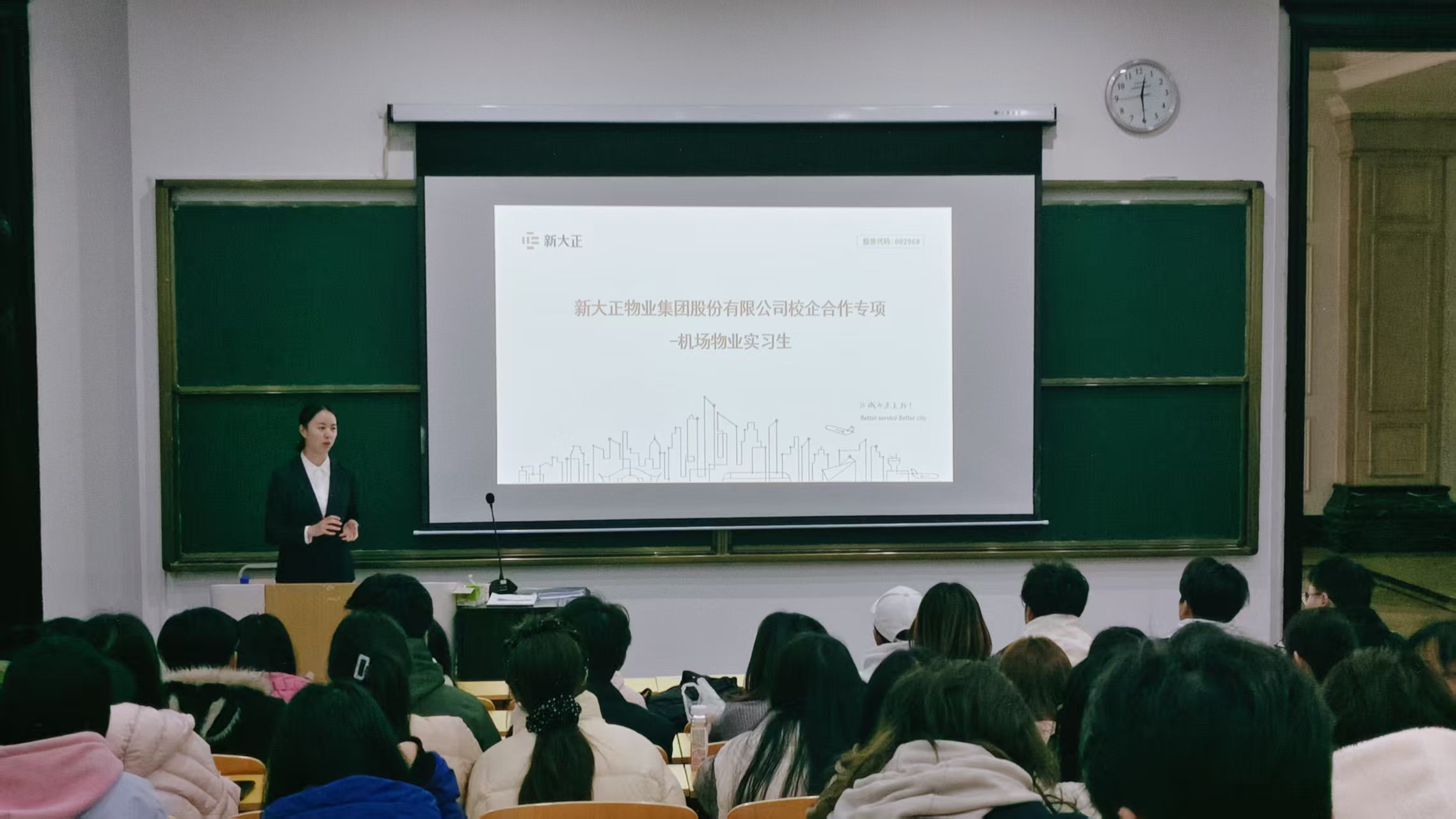 2026年3月19日,公共管理学院依托新大正物业集团股份有限公司进校契机,将企业资源融入学院分类培养育人体系,面向大一学生开展了一场深度融合职业启蒙、规划引导与岗位对接的专题活动,为大一有意就业学生量身打造的职业融入第一课。