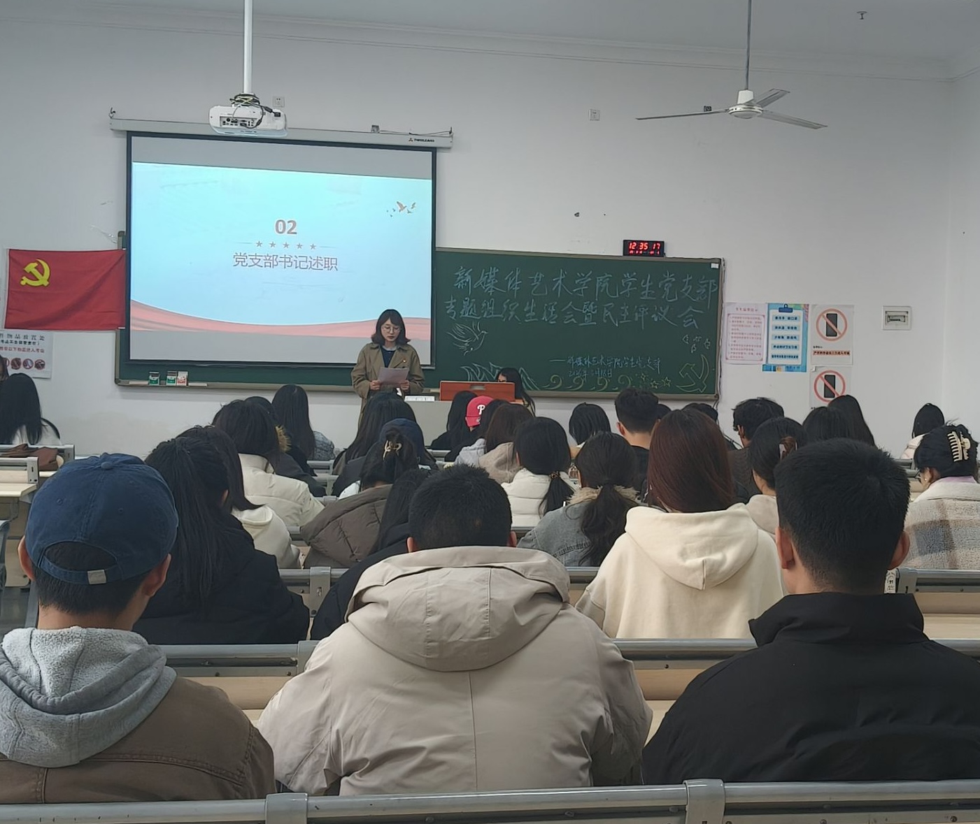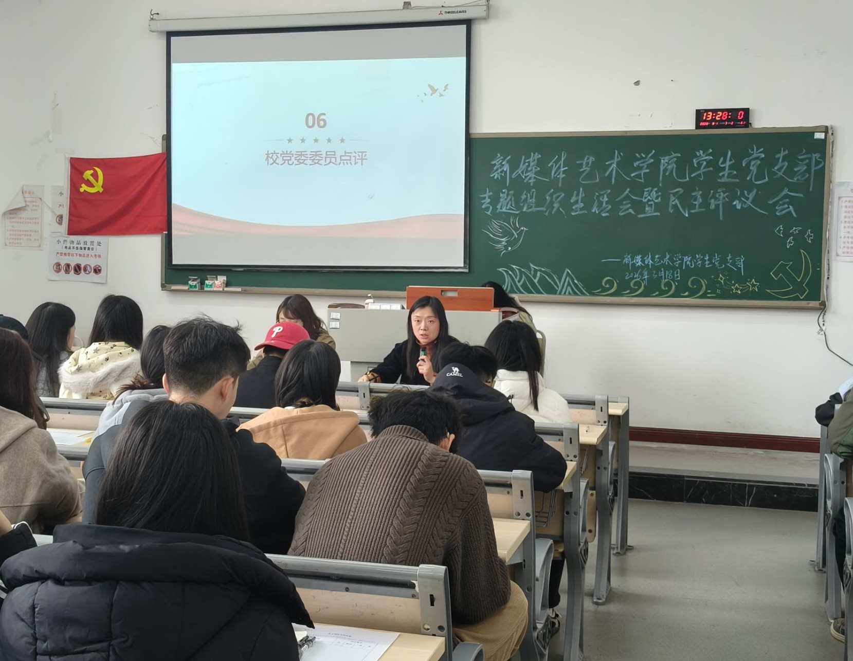 为深入学习贯彻党的创新理论,巩固深化党纪学习教育成果,进一步提升党支部政治功能和组织功能,3月18日,我校新媒体艺术学院学生党支部在1601室开展了2025年度专题组织生活会暨民主评议会。会议由学生党支部书记封雨洁主持,学校校党委委员、新媒体艺术学院党总支书记倪倩茜,学生党支部组织委员张浩及全体学生党员参会。