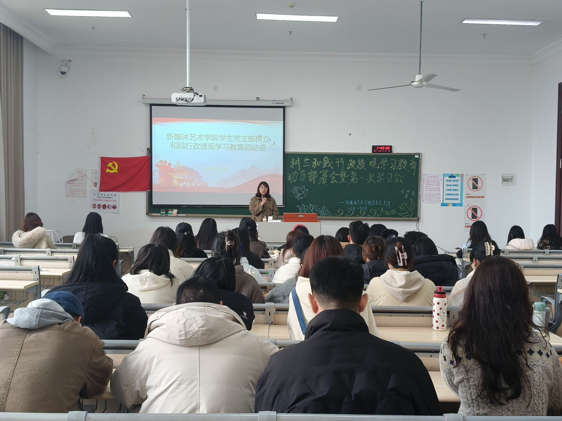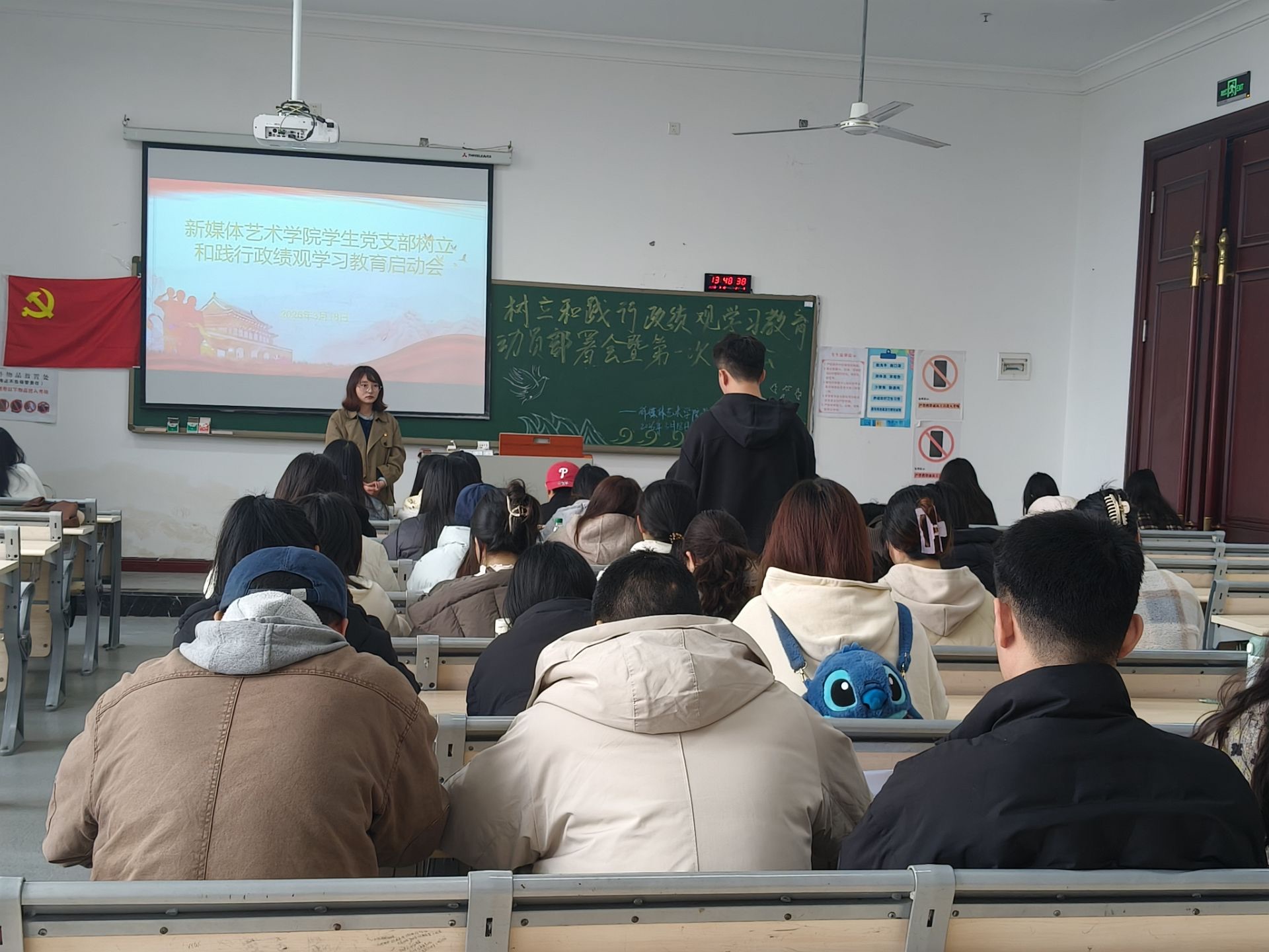 为深入学习贯彻习近平新时代中国特色社会主义思想,教育引导学生党员筑牢思想根基、砥砺优良作风、强化责任担当,以科学政绩观引领高质量发展和全面从严治党向纵深推进,2026年3月18日,新媒体艺术学院学生党支部在教学楼1601室组织召开树立和践行正确政绩观学习教育动员部署会暨第一次学习会。会议由学生党支部书记封雨洁主持,支部全体学生党员参加学习研讨。