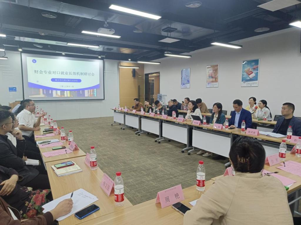 为推动“访企拓岗促就业”专项行动持续开展,深化学校与用人单位间的供需对接,挖掘更多岗位资源。11月2日下午,我校财富管理学院党总支书记宋钰静、会计学院党总支书记姚转花、财富管理学院副院长杨振,财富管理学院、会计学院各教研室负责人及学生代表一行前往江北区红旗河沟参加2024财会专业对口就业长效机制研讨会。出席会议的有重庆市市场监督局二级巡视员蔡晓波,重庆市人才交流服务中心大学生工作部部长梁晶,重庆市代理记账行业协会会长冯璞、秘书长刘刚、会员中心主任谢康。