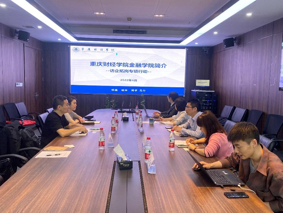 为响应教育部关于访企拓岗促就业专项行动的号召,进一步加强校企合作,助力学生高质量就业。5月20日上午,金融学院院长贺晗、党总支书记罗婷婷带队前往国泰君安证券股份有限公司重庆分公司(以下简称:“国泰君安”)走访交流,深入调研企业用人需求,挖掘高质量就业岗位。