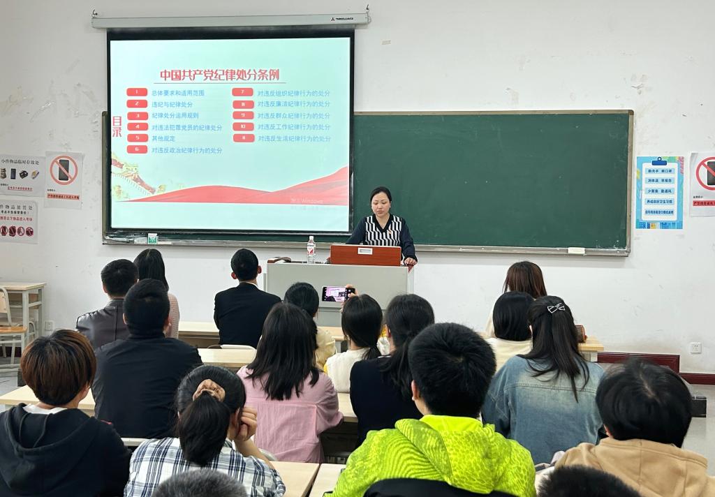 接着,学院党总支副书记刘有沛同志从四个层面深入解读了新修订的《中国共产党纪律处分条例》,要求全院党员要深入领会《条例》的重点内容。她指出,开展党纪学习教育,是以习近平同志为核心的党中央作出的重大决策,是加强党的纪律建设、推进全面从严治党向纵深发展的重要举措。全院党员要深入学习习近平总书记重要讲话和重要指示精神,深刻领悟“两个确立”的决定性意义,坚决做到“两个维护”。